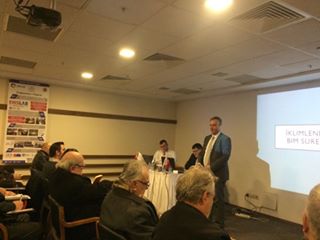 Derneğimiz organizasyonunda, TMMOB İzmir Şube ve İZMİMOD işbirliği ile Bina Bilgi Modelleme Sistemi (BİM) Tanıtım Toplantısı gerçekleştirildi. Yönetim Kurulu Başkanımız Hakan SEMERCİ’nin açılış konuşması ile başlayan etkinlik İSKİD Genel Sekreteri Ozan ATASOY, ProCS Genel Müdürü Daniel KAZADO ve liNear İş Geliştirme Müdürü Nadir SARKUŞ’un sunumları ile devam etti. Yoğun katılımla gerçekleştirilen etkinlikte izleyiciler Bina Modellemesi ile ilgili bilgi sahibi oldu. Bir binanın inşaası sırasındaki tüm disiplinlerin birbiri ile uyumlu çalışmasını sağlayacak bir yönetim sistemi olan BİM sayesinde doğru binanın hayata geçirilmesi hedeflenmektedir.