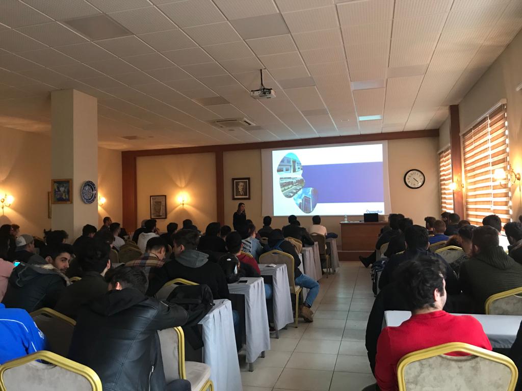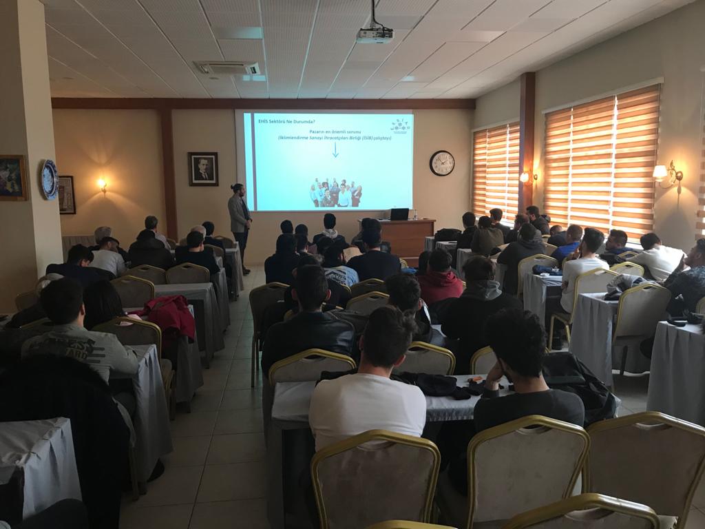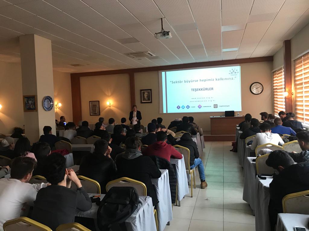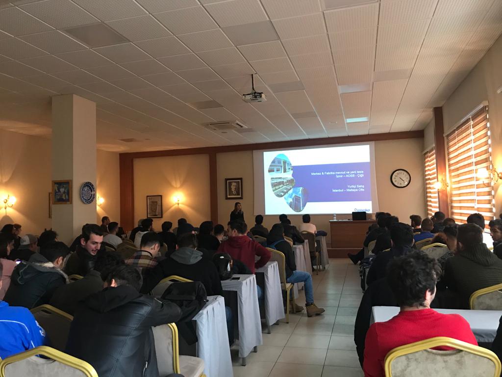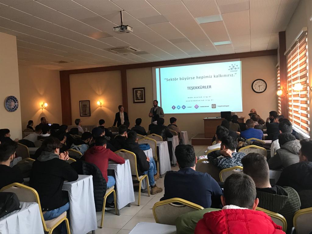 ESSİAD Okuldan İşe Projesi kapsamında, ESSİAD Genel Sekreteri Can İŞBİLEN, ESSİAD Yönetim Kurulu Üyesi Alev TOPRAK, Okuldan İşe Komisyonu Üyesi Mustafa ÖZER, Eneko Havalandırma Üretim Mühendisi Onur GEZER ve İnsan Kaynakları Uzmanı Gizay ÖZDOĞAN’ın katılım ve sunumları ile Ege Üniversitesi Ege Meslek Yüksekokulu’nda 1. ve 2. Sınıf öğrencilerine sektör sunumu gerçekleştirildi.