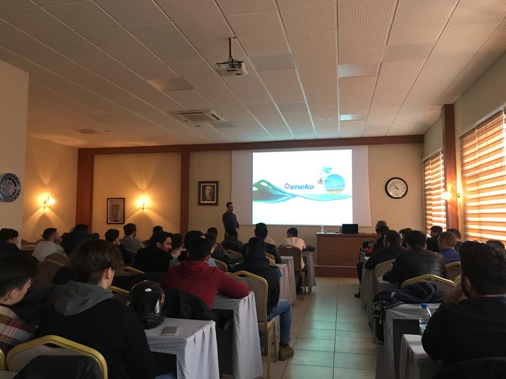 Soğutma Dünyası Yayın Kurulu Üyesi ve Ege Meslek Yüksekokulu Müdür Yardımcısı Öğr. Gör. İbrahim KARAÇAYLI, Elektrikli Cihaz Teknolojisi Program Koordinatörü Öğr. Gör. Selçuk ÇALIŞKANBAŞ, Vestel Akademi Kıdemli Teknik Eğitim Uzmanı Tamer ŞİMŞEK’in katıldığı sunumda; öğrencilere dernek faaliyetleri, yürütülen projeler, EHİS sektörü hakkında bilgi verildi. Öğrencilere doğru kariyer tercihi yaparken nelere dikkat etmeleri hususunda bilgi aktarırken, bölümden mezun olacak olan öğrencilere sektörümüzün ihtiyacı olduğu vurgulandı.