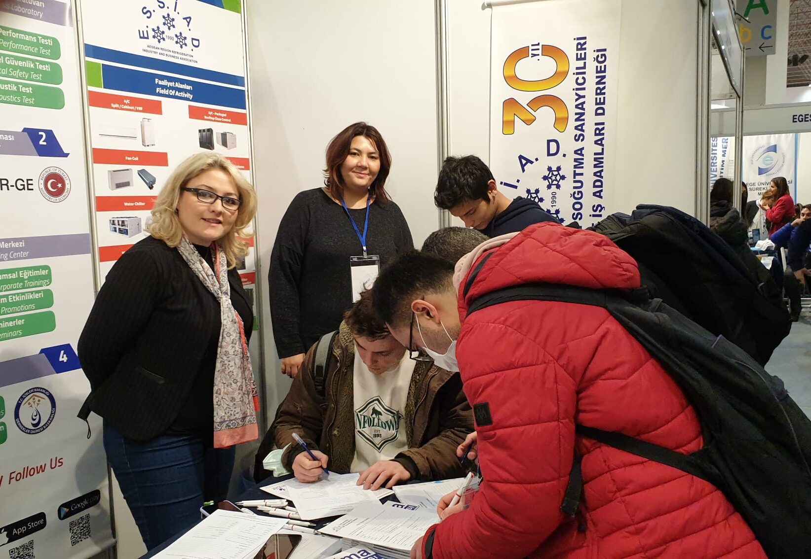 ESSİAD’ı temsilen İdari İşler Sorumlusu Gülcan ÖRTEL ve Muhasebe ve Finans Sorumlusu Elif KOÇYİĞİT’in katılım sağladığı fuarda dernek üyelerinin, projelerinin ve yayınlarının tanıtımı yapılmış olup, sektörümüzün nitelikli personel ihtiyacının giderilmesi amacıyla staj ve istihdam konularında öğrenim görmeye devam eden üniversitelerin makina, elektrik-elektronik, mekatronik vb. bölümlerindeki öğrenciler ve mezunlar ile görüşmeler gerçekleştirildi.