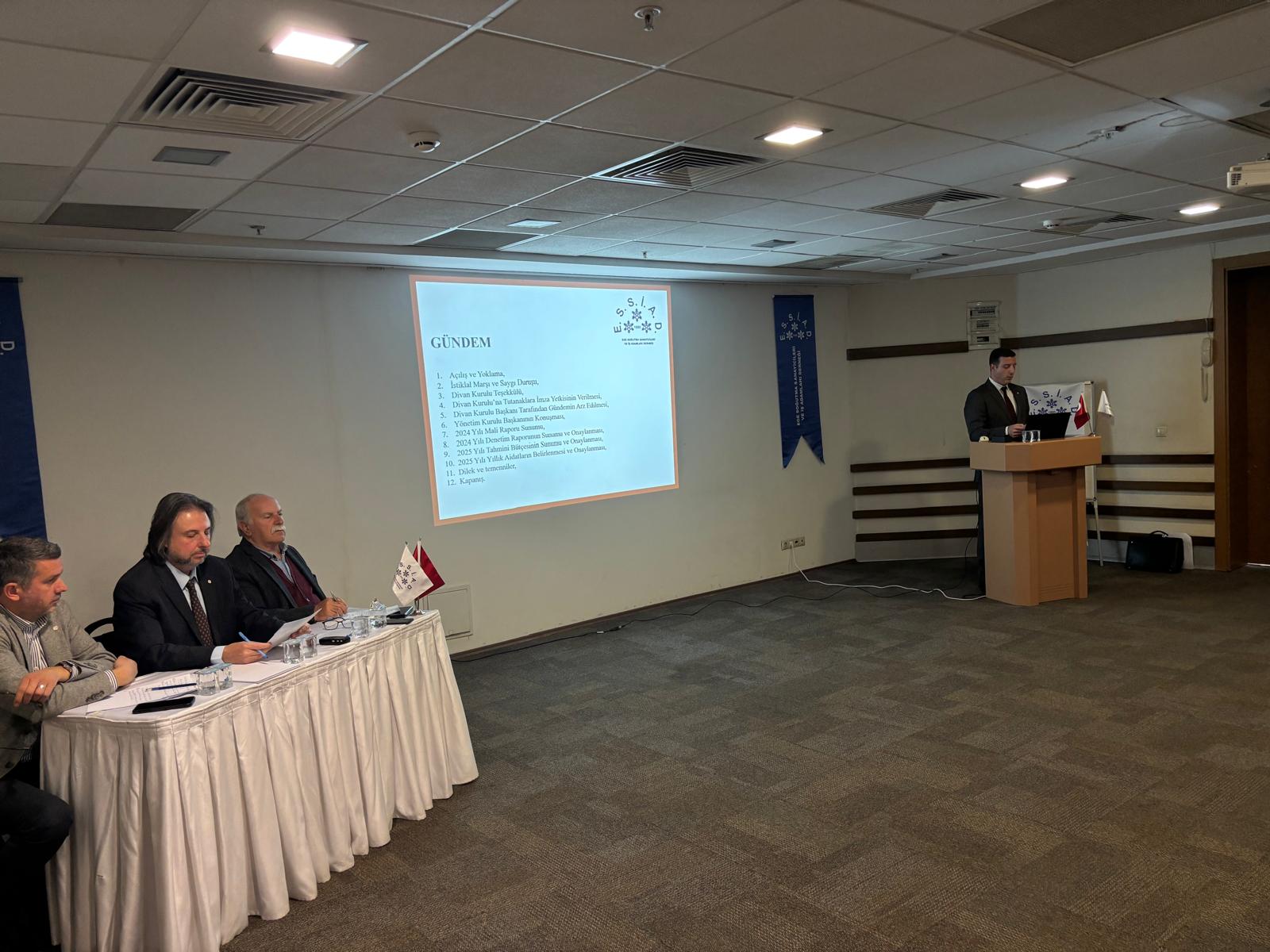 ESSİAD Yönetim Kurulu Başkanı M. Turan MUŞKARA’nın açılış konuşması ile başlayan toplantıda, Denetleme Kurulu Başkanı Ş. Akın KAYACAN tarafından 2024 yılı Denetleme Kurulu raporu, Yönetim Kurulu Sayman Üyesi A. Burak SATOĞLU tarafından 2024 yılı mali raporunun sunulması sonrasında denetleme kurulu raporu, mali rapor ve 2024 yılı gerçekleşen bütçesi oy birliği ile kabul edildi.