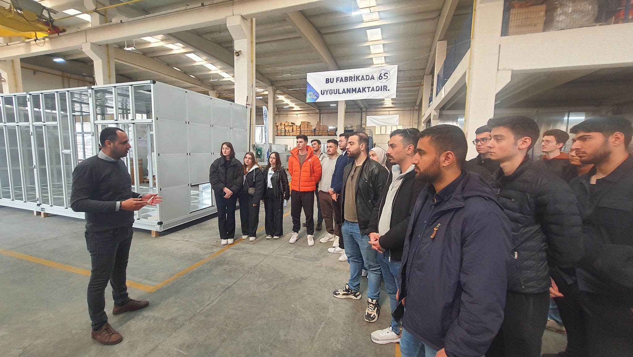 İmas Klima Üretim Müdürü Gökçen Erdinç ve Kalite Kontrol ve Üretim Takip Sorumlusu Sercan Tekin’in rehberliğinde gerçekleştirilen teknik gezide öğrenciler üretim hattı, mühendislik hizmetleri ve gerçekleştirilen testler hakkında bilgi aldı.