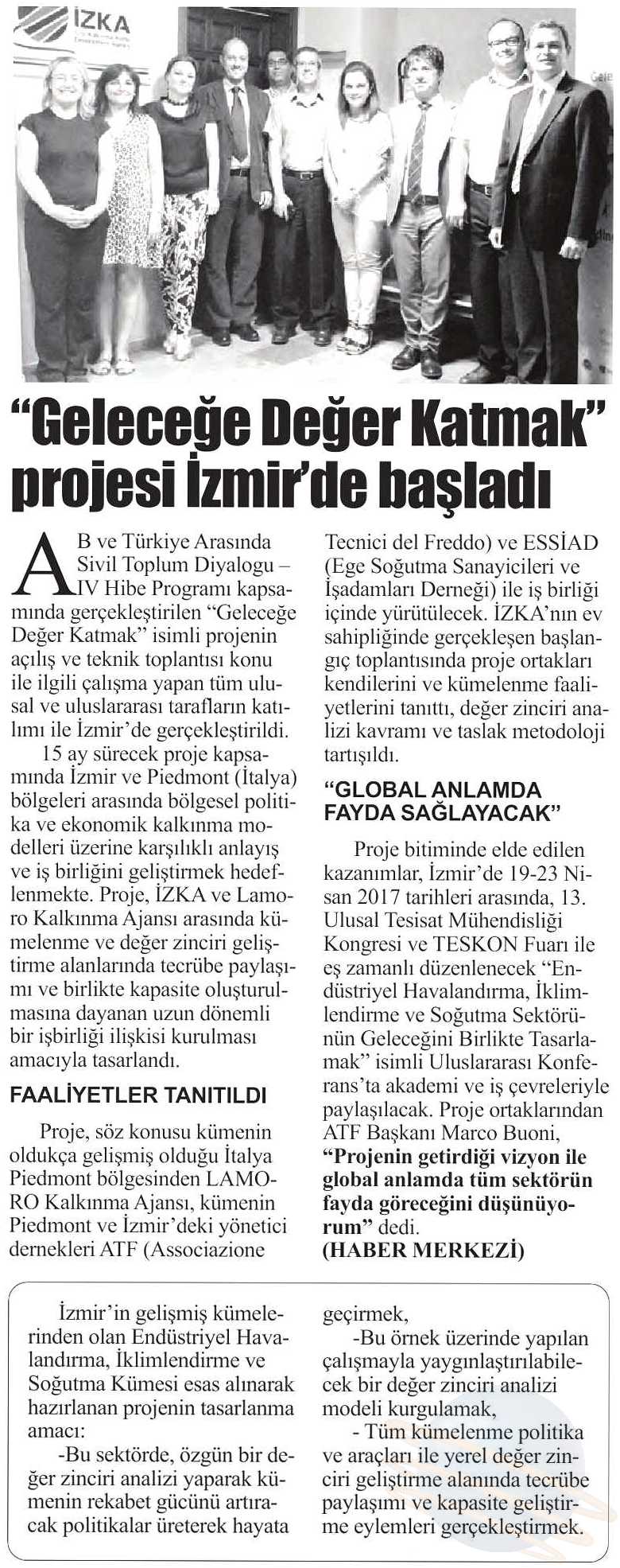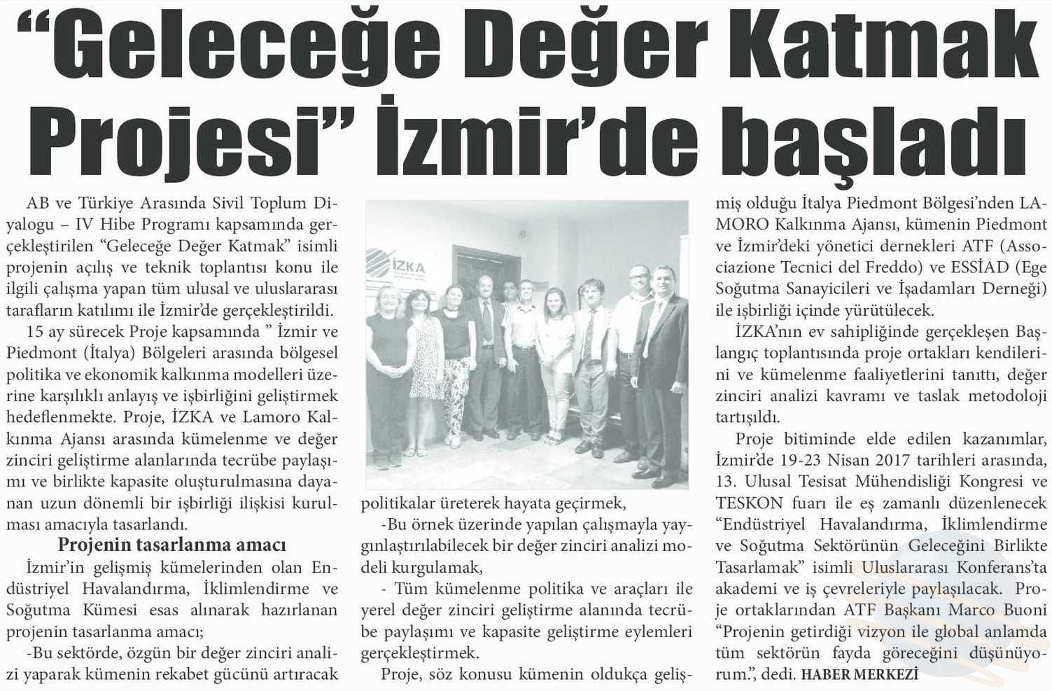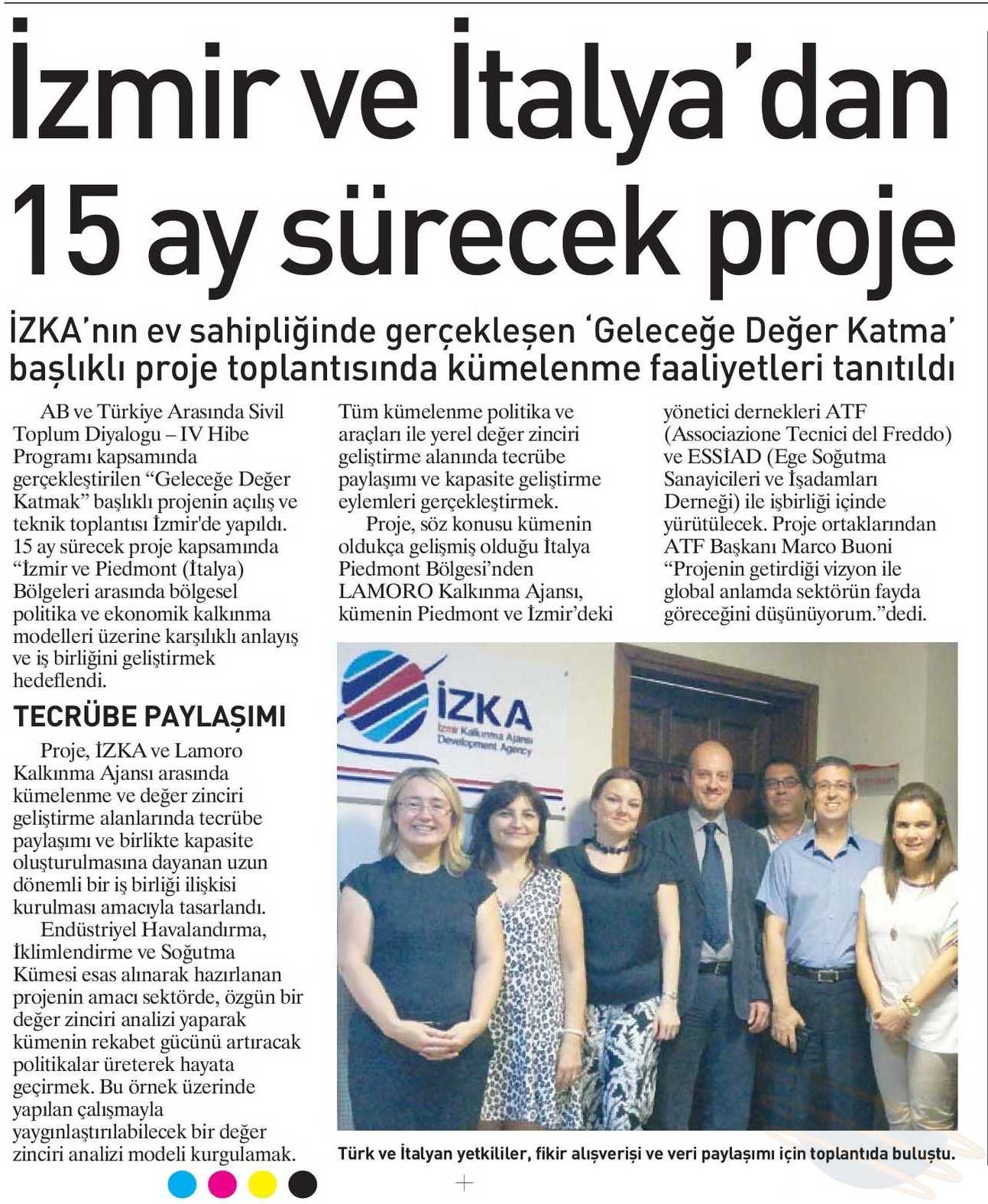 Proje ortakları olan Associazione Tecnici Del Freddo (ATF / İtalyan Soğutma Derneği), LAMORO Kalkınma Ajansı ve Derneğimizin yanı sıra Avrupa Birliği Bakanlık temsilcisi ve İzmir Kalkınma Ajansı yetkilerinin katıldığı toplantıda; İtalya Piedmont bölgesi ve EHİS kümesi; ATF ve ESSİAD ile birlikte ilgili bölgelerin Kalkınma Ajansları; LAMORO ve İZKA işbirliği ile Endüstriyel Havalandıırma İklimlendirme ve Soğutma sektörünün değer zinciri analizinin yapılacağı projede sektörün rekabet gücünü artıracak politikalar üretilip hayata geçirilmesi planlandı.