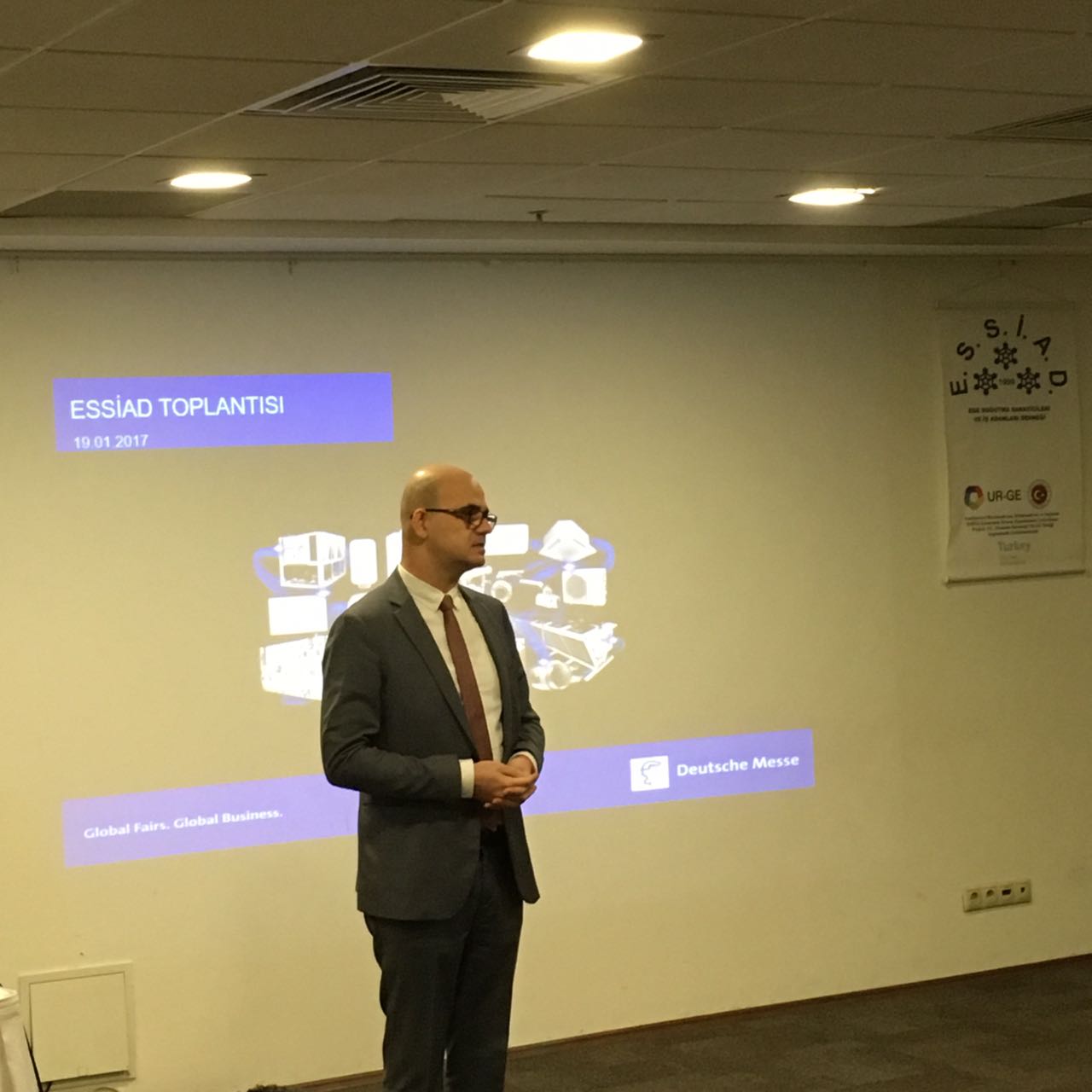 ESSİAD organizasyonunda düzenlenen ISK Sodex 2018 Bilgilendirme Toplantısı Tepekule İş Merkezi Marmara Salonu’nda düzenlendi. Fuar Direktörü Sn. Toros UTKU ve Satış Direktörü Sn. Emre ÇİÇEKÇİ’nin sunumları ile gerçekleştirilen toplantıda; yeni fuar merkezi yerleşim planı, fuar disiplini yerlerin tanımlanması, 2018 yılı fuar süreç planı, fuar alanına ulaşım seçenekleri konularında katılımcılara bilgi aktarıldı.